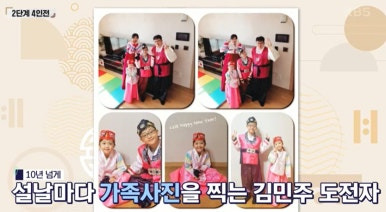 김민주: 주부. 2006년에 남자 친구(현재의 남편)와 예심 참가. 설날마다 한복 차림으로 가족 사진 기록. 올 2월 예심 합격자. 결과: 4위(150점)